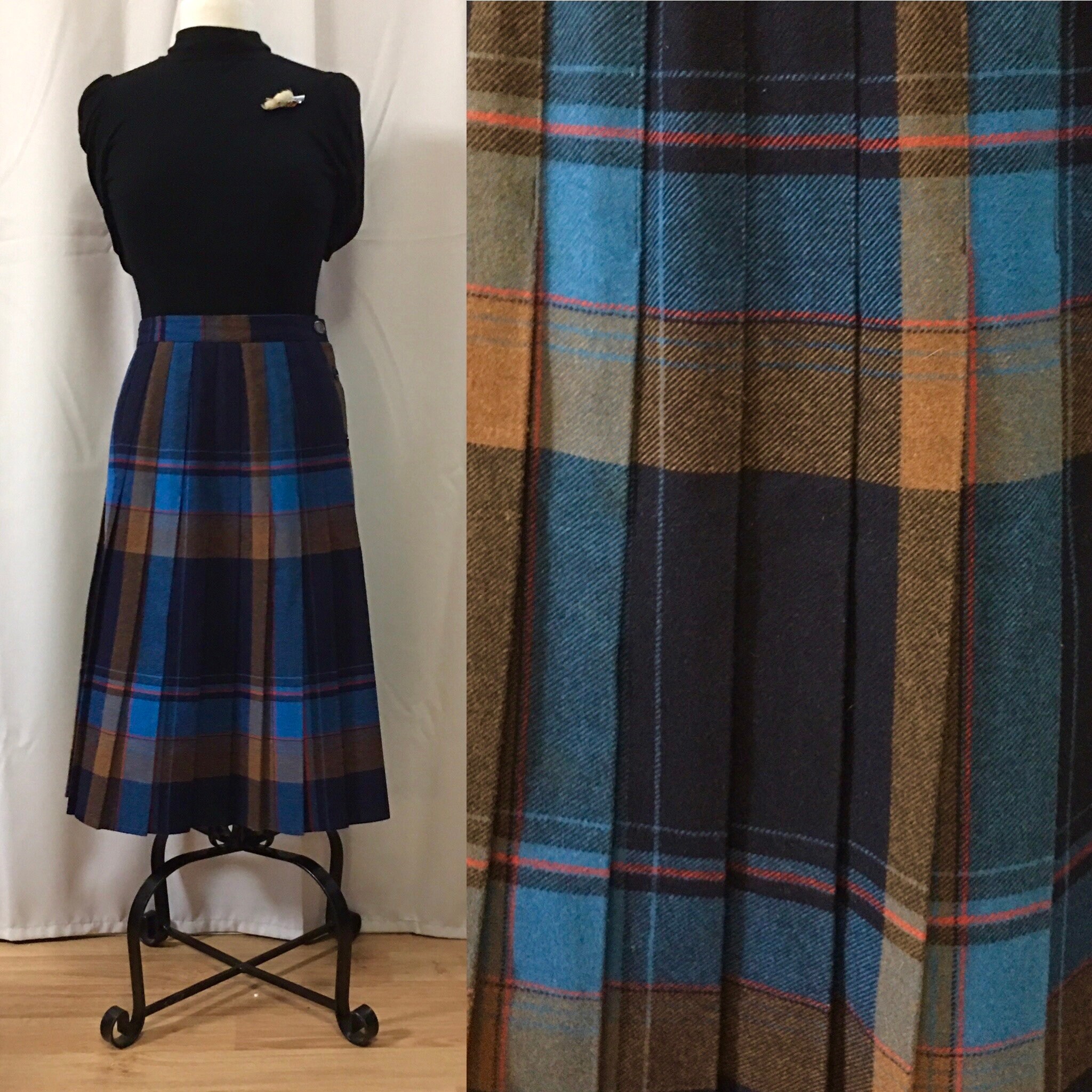 Vintage 80s Pleated Tartan Skirt Snob London Kilt Side Buttons Etsy Norway
